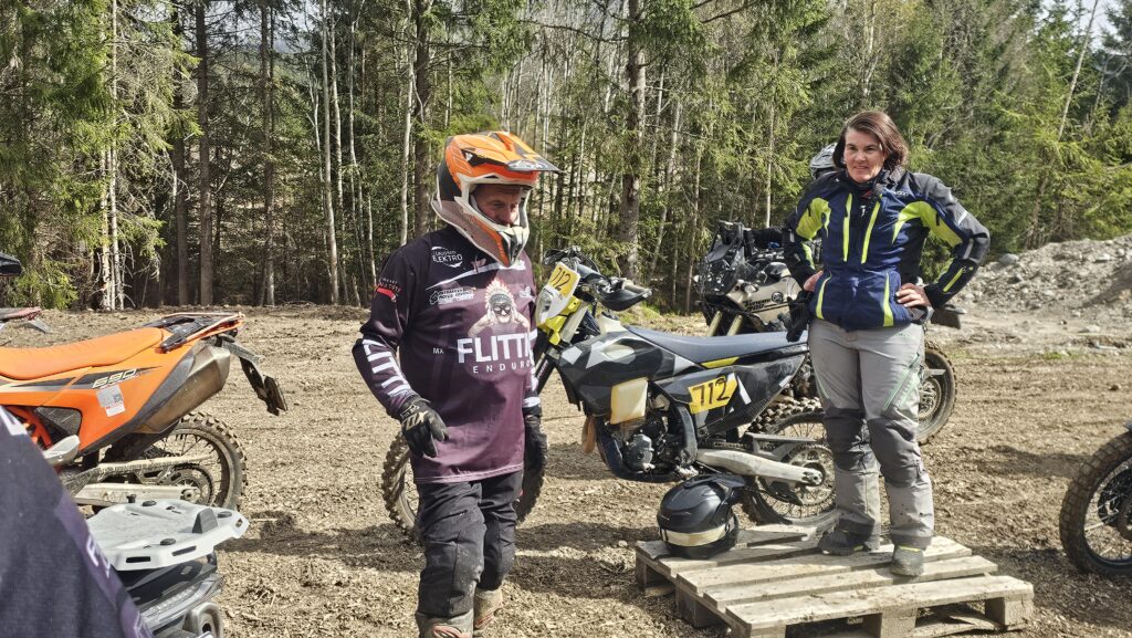 Lørdag 25. mai var det igjen klart for kjørekurs med Adventureskolen – og suksessoppskriften fra i fjor fungerte like godt denne gangen. Igjen var det anlegget til Flittig Enduro på Grenland Motorsportsenter som dannet rammen rundt arrangementet, og igjen var det Asbjørn Sletholt og endurogutta hans som sto for opplegget. Når et konsept fungerer, er det ingen grunn til å gjøre store endringer. Det fine med enduro er at det ikke har noen aldersgrense. Her møttes unge og eldre instruktører med samme lidenskap: å gjøre adventureførerne tryggere og bedre på løst underlag.