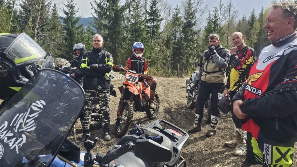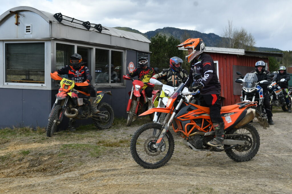 Etter pausen ventet nye valg: Enten tur ut i endurosporene i skauen, eller en grustur innover Luksefjell. Noen klarte ikke velge – og fikk begge deler da Kyrre Hagen tok med de mest kjøreglade på en bonustur helt på slutten. Slik skal det være.